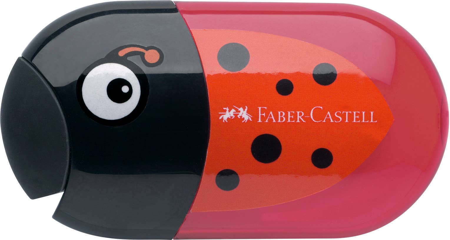 The twin sharpening box with cute ladybug design, sharpens all popular pencil shapes in both standard and jumbo sizes. It is suitable for both graphite and colored pencils.