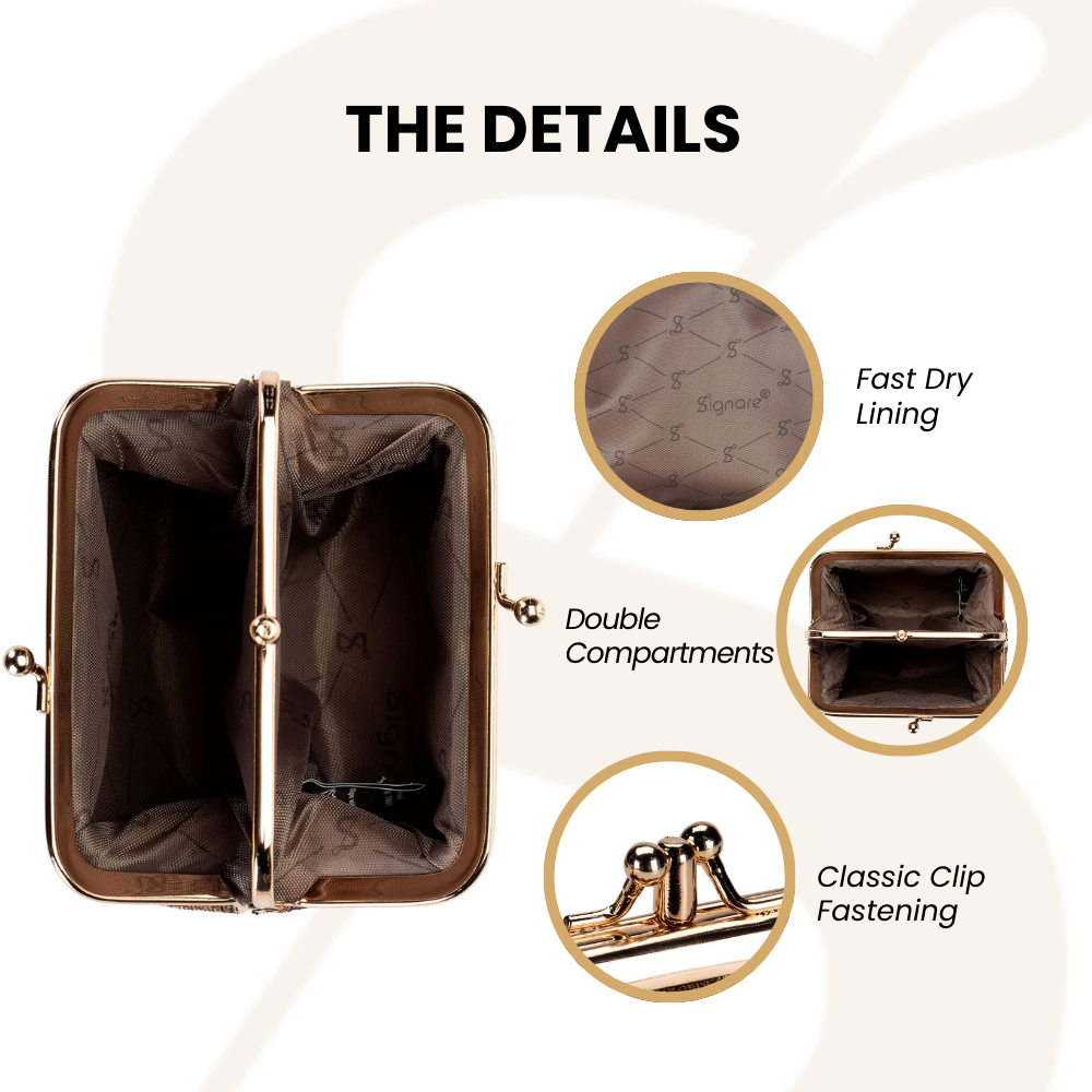 * Contains a gold or silver frame (depending on design) with double clasp closure
