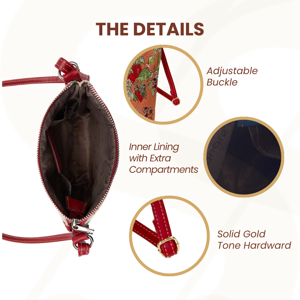 If you fancy a very casual and compact bag, this tapestry fabric sling bag is for you.