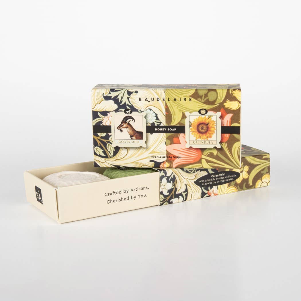 Whether you're after Goat's Milk's pH-balanced moisture or Calendula's skin-soothing benefits, we've got you covered with two of our popular honey soap fragrances in one petite package. The matchbox set comes with a 1.4 oz bar of Goats Milk and a 1.4 oz bar of Calendula, perfect for gifting on its own or curating into a lovely gift basket.