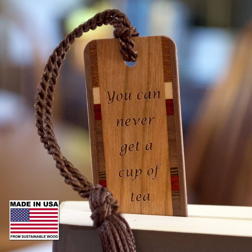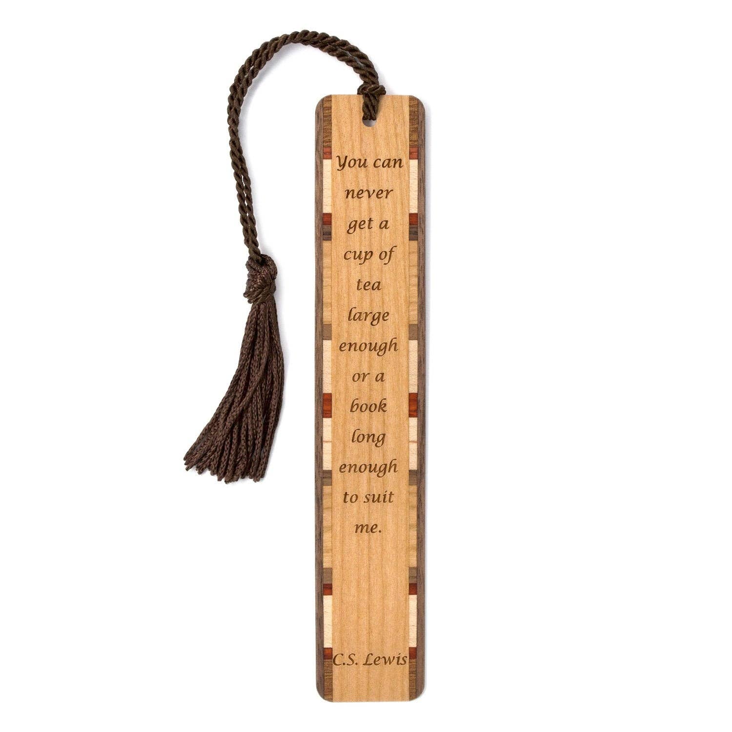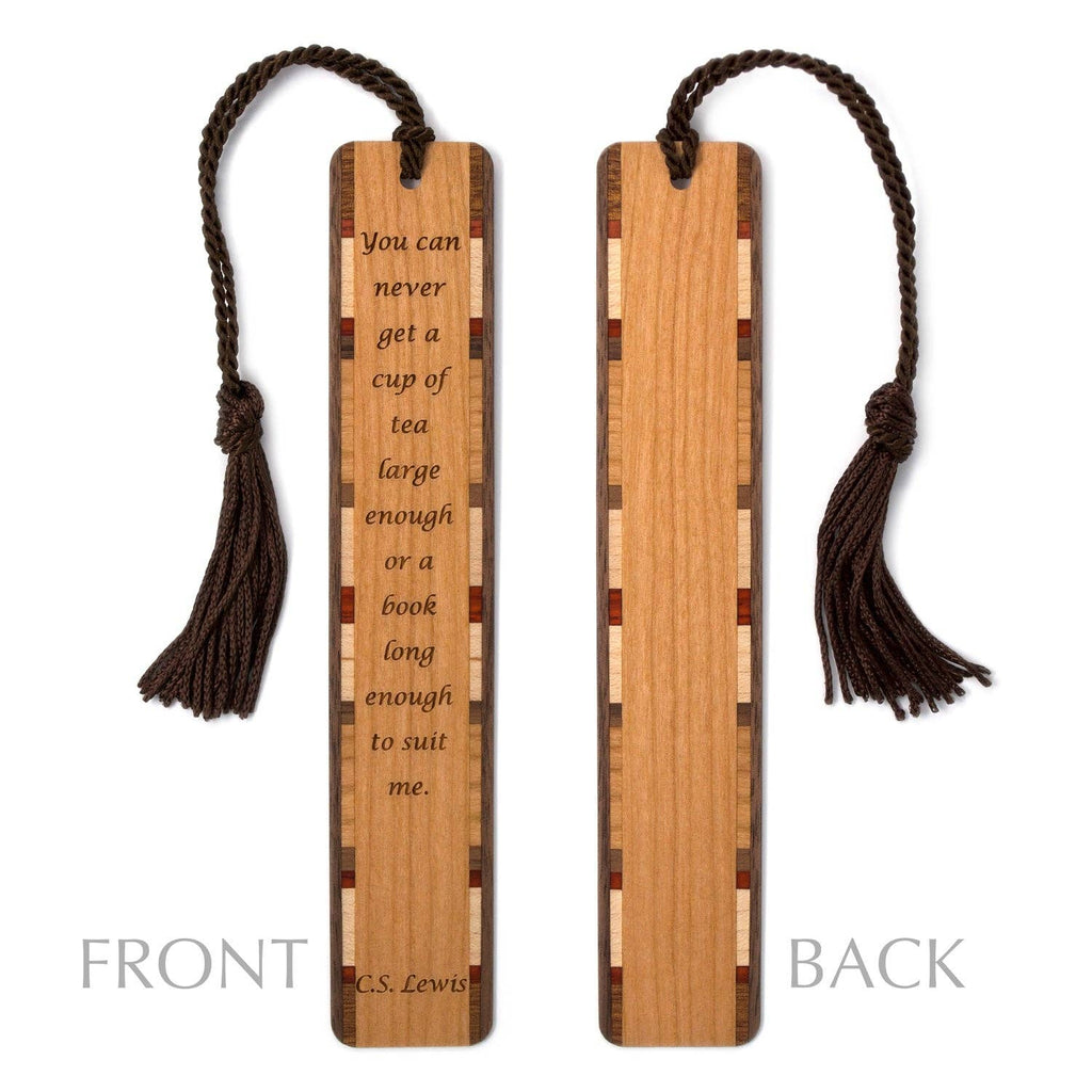 This is a quote by C.S. Lewis engraved on a solid cherry wood center, framed by two inlays comprised of various domestic and exotic hardwoods with a complimenting pair of solid wood borders along both outer edges. The inlay and border accent wood combinations will vary with each bookmark.