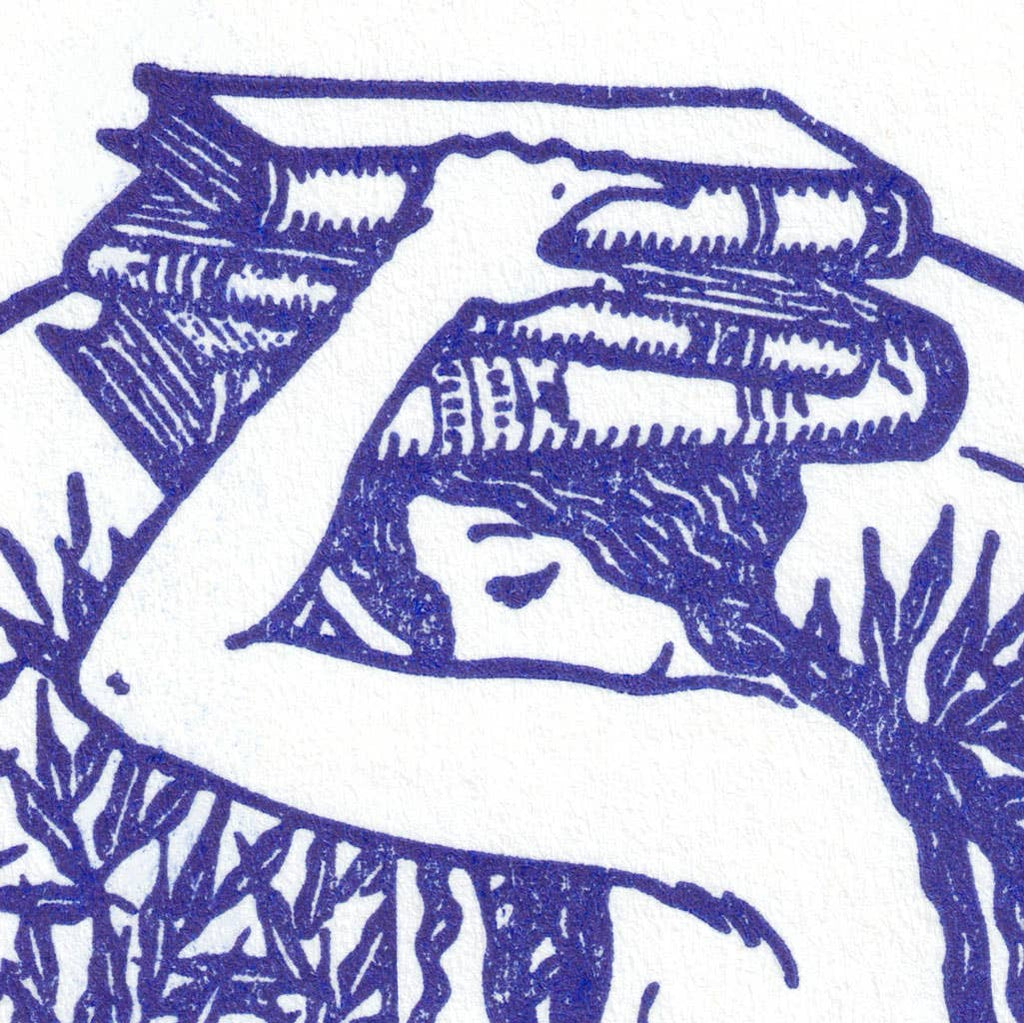 Pack of twenty gummed letterpress printed bookplates. Add a touch of inspiration to your book collection with Saturn Press's Muse bookplate.