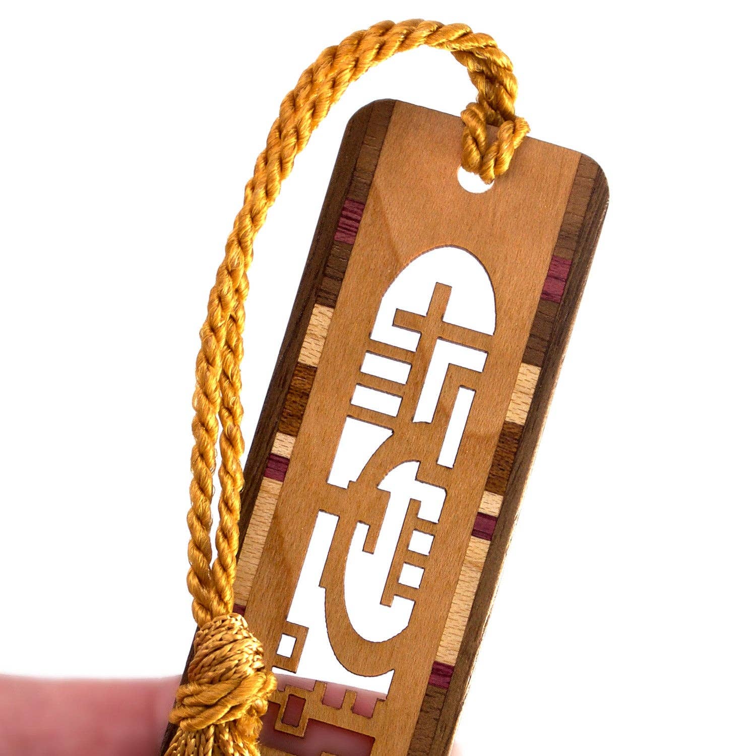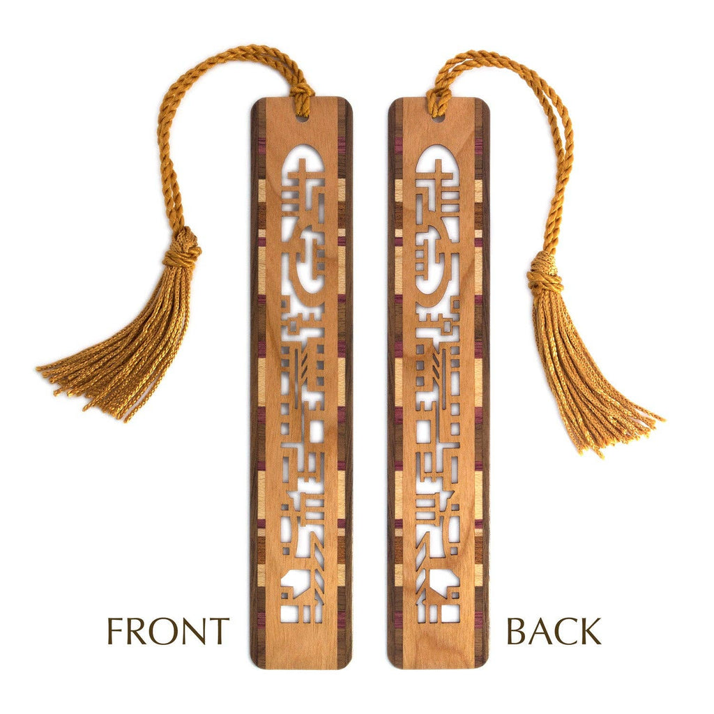Expertly handcrafted in the USA from solid cherry hardwood, this bookmark showcases the natural beauty of cherry wood, enhanced by intricate inlay strips made from a variety of domestic and exotic woods along both sides.
