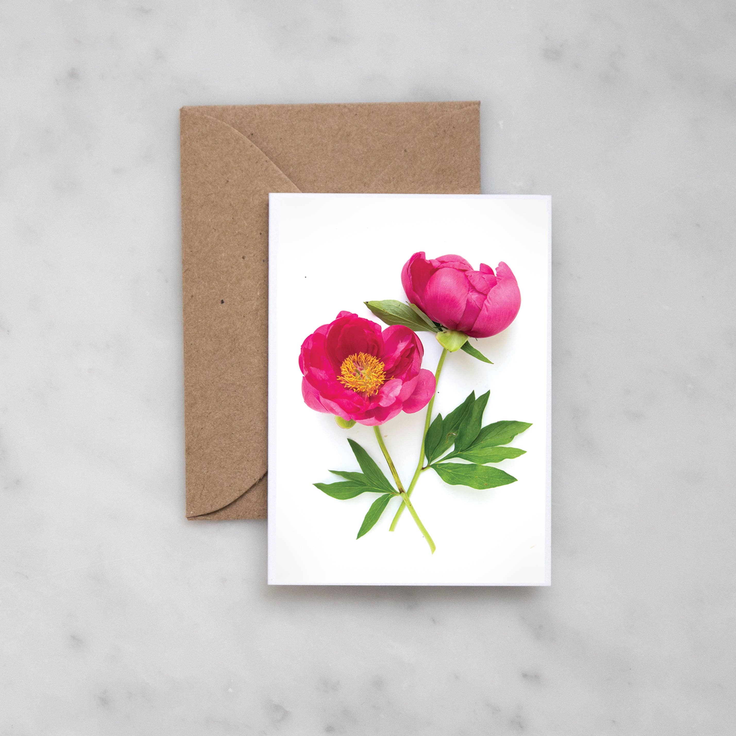 * 5 cards total - 2 heart cards and three different pink peony cards.