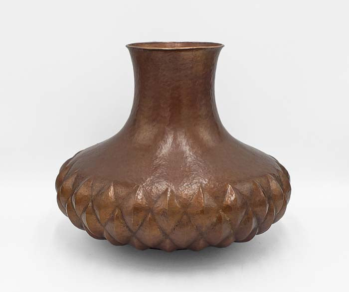 Master Coppersmith Antonio Ziranda has created a diamond pattern on this vase using respousse’, a technique dating to ancient Mesopotamia.