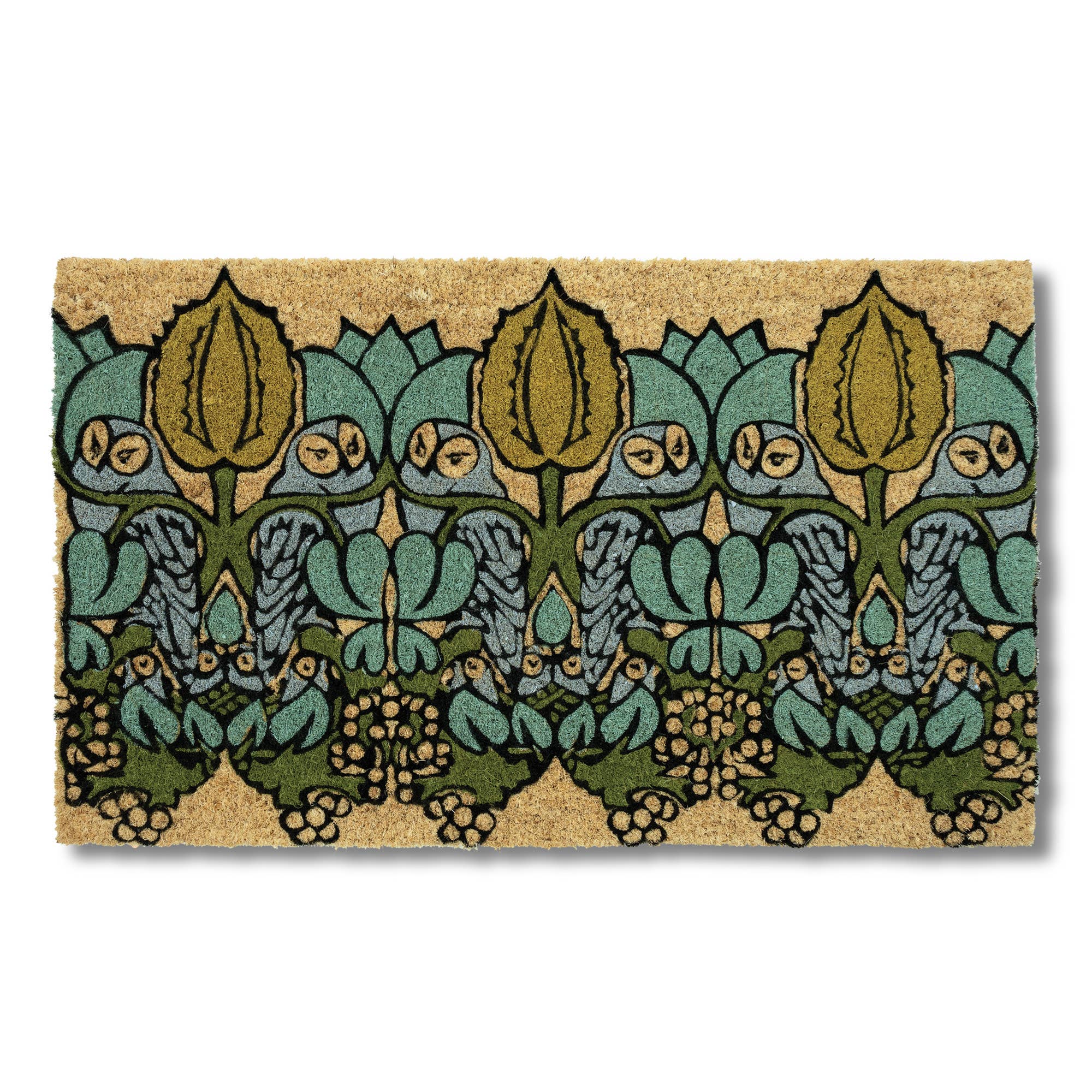 On this doormat, C.F.A. Voysey's design for The Owl from 1897 captures his signature style of fusing organic forms with rhythm and simplicity, making it a hallmark of the Arts and Crafts Movement. Many of Voysey's most captivating designs showcase the influence of William Morris' principles of patternmaking, as well as a deep appreciation for nature.