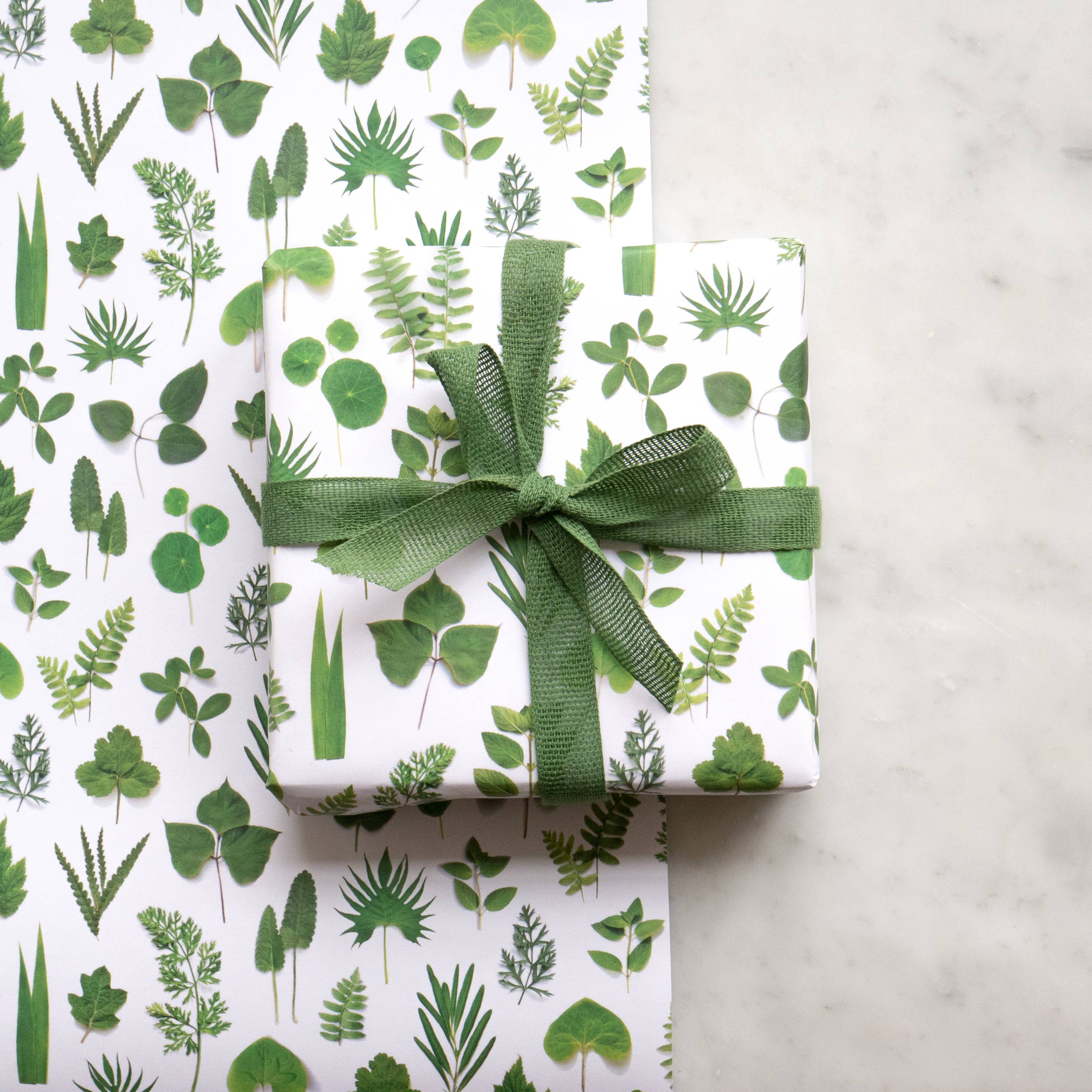 Three sheets of decorative paper, printed in leaves and ferns. Created from photographs of fresh plant material, these designs pop off the paper and bring packages to life. Printed on luxurious, uncoated, text weight paper.