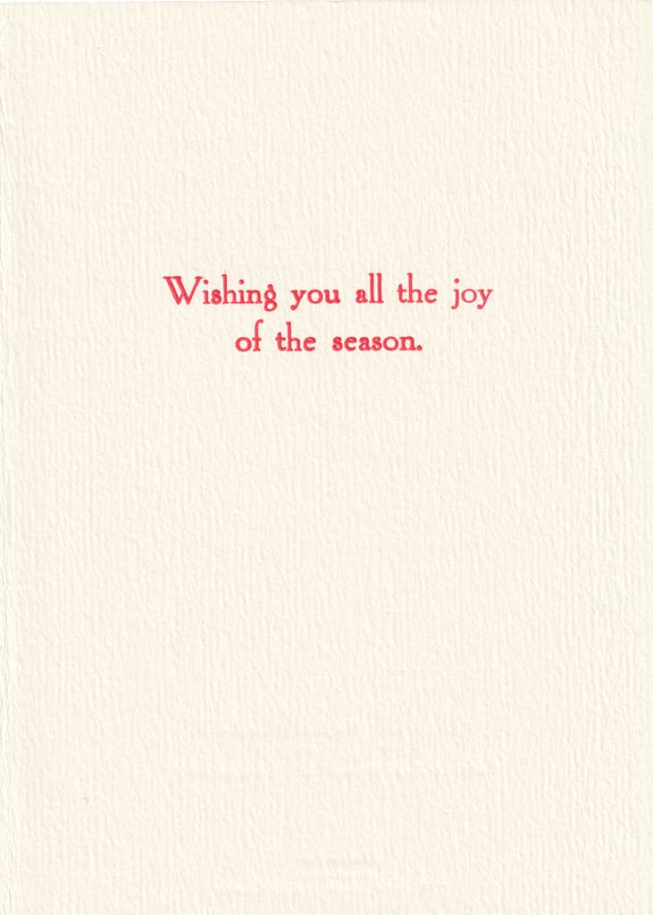 The snow effects and pine needle details are particularly stunning in letterpress, where the deep impression creates actual texture that mimics real snow and evergreen branches. This tactile quality is impossible to replicate in digital printing.