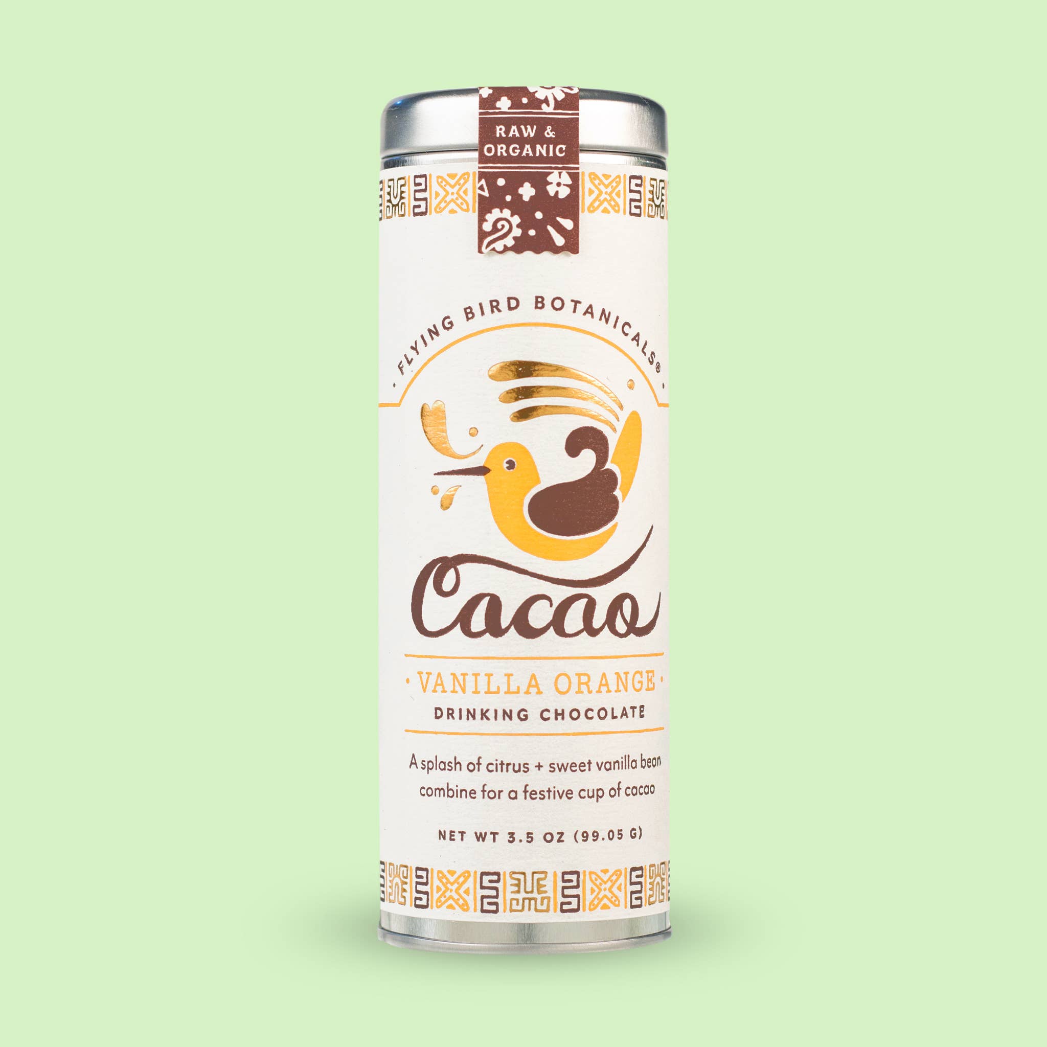 Ingredients: Organic Cane Crystals, Organic Raw Heirloom Cacao, Organic Sweet Orange Powder, Organic Vanilla Bean, Organic Sweet Orange Essential Oil Approximately 8-9 servings per container.