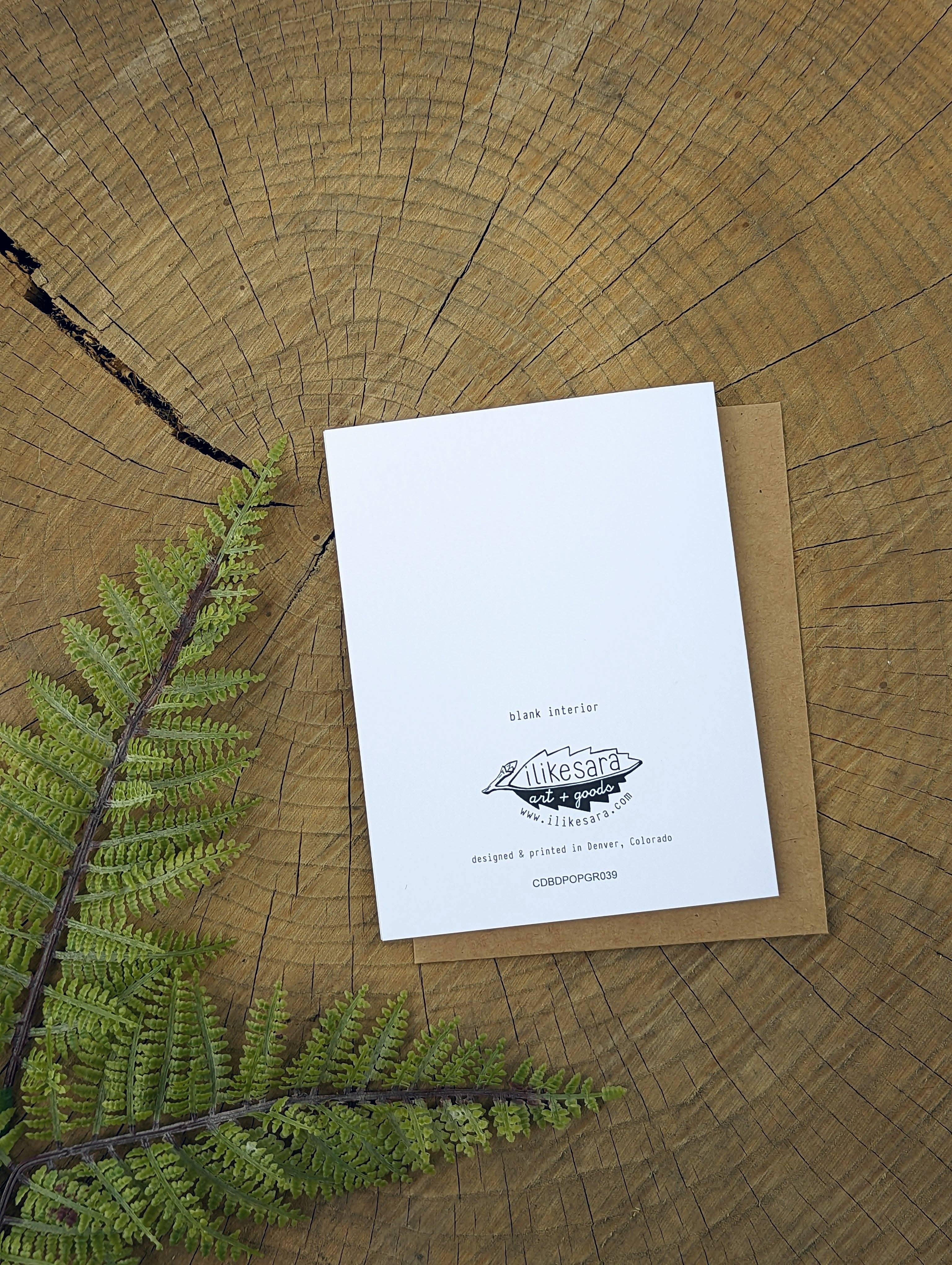 Happiest of Birthdays to You! Featuring poppy and fern illustrations by Sara Schalliol-Hodge, this card was designed especially for celebrating that uplifting person in your life. -measures 4.5" x 5.5" when folded
