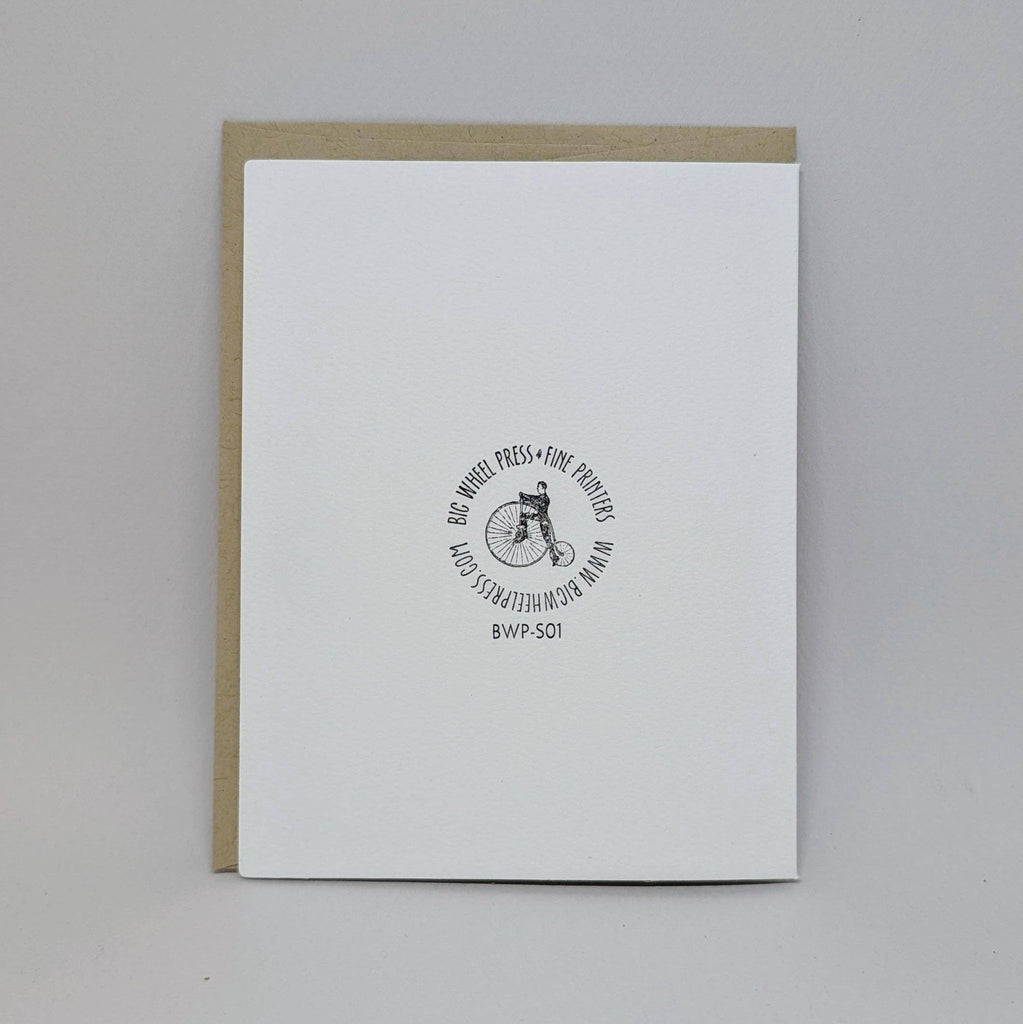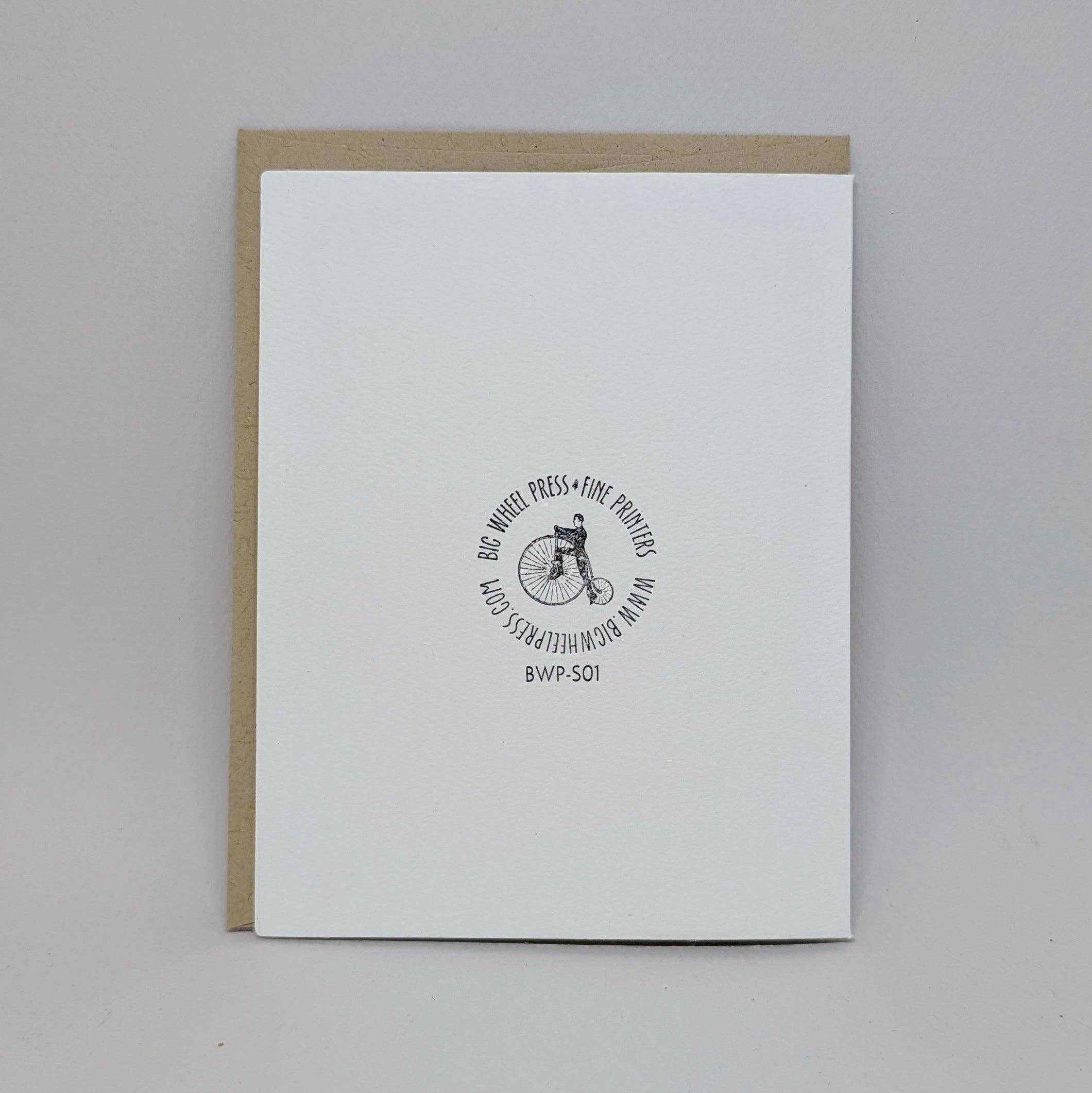 This greeting card was designed by our own William Muller and then printed on fine heavy weight paper in our studio in Easthampton, Massachusetts. This card features a letterpress printed cover and is blank inside. This is an A2 sized card measuring 4.25" x 5.5"