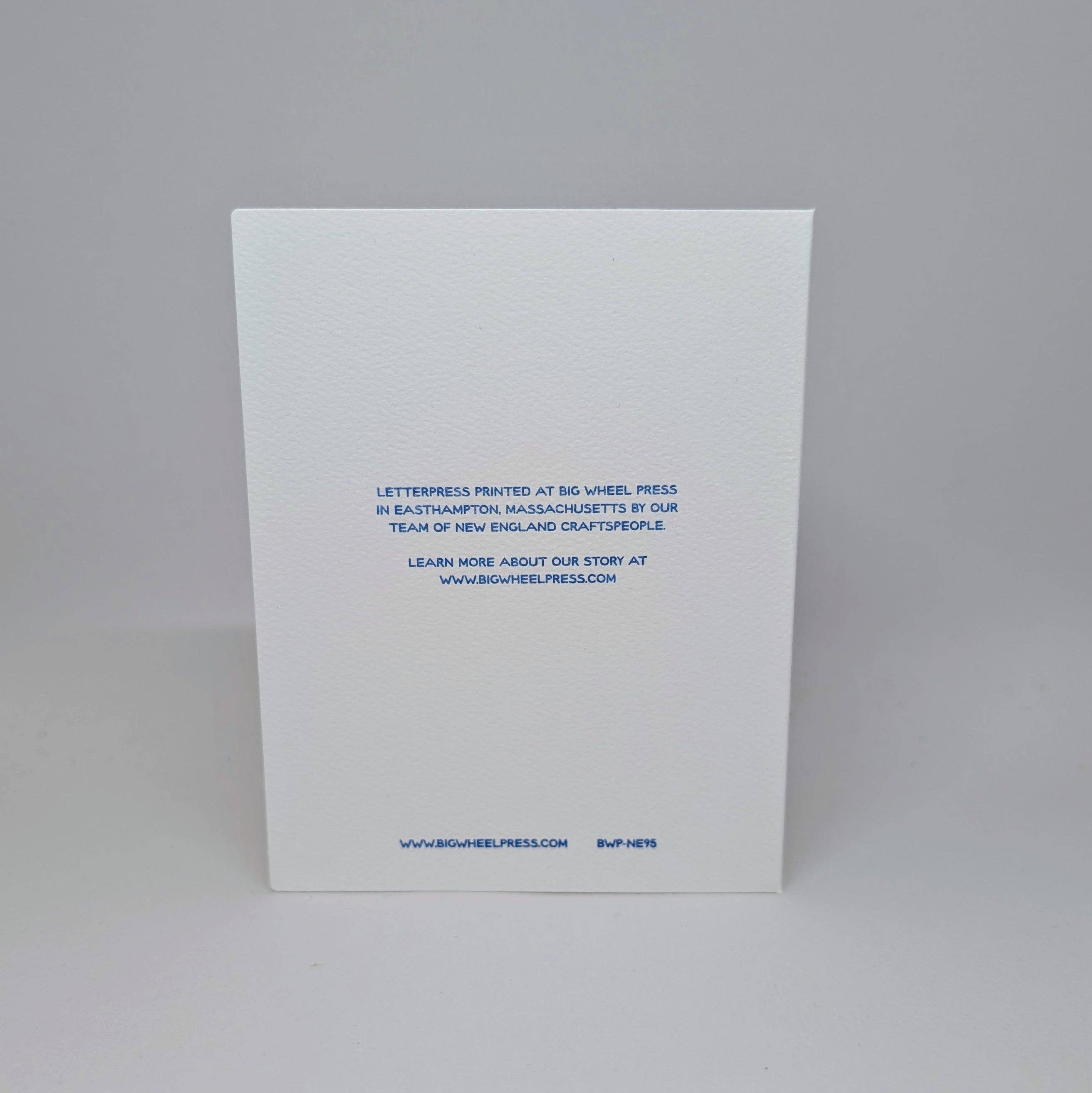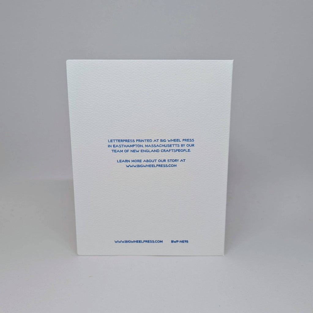 This greeting card was designed by our own William Muller and then printed on fine heavy weight paper in our studio in Easthampton, Massachusetts. This card features a letterpress printed cover and is blank inside. This is an A2 sized card measuring 4.25" x 5.5"