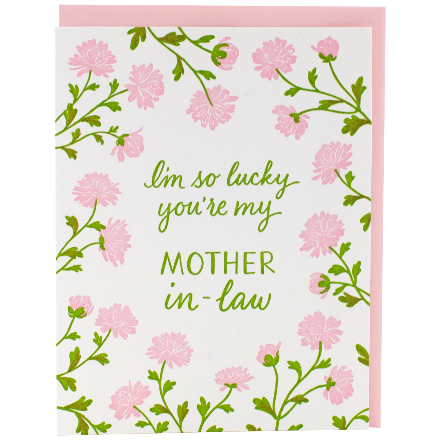 Delicate pink mums create a pretty floral border surrounding hand-lettered text.