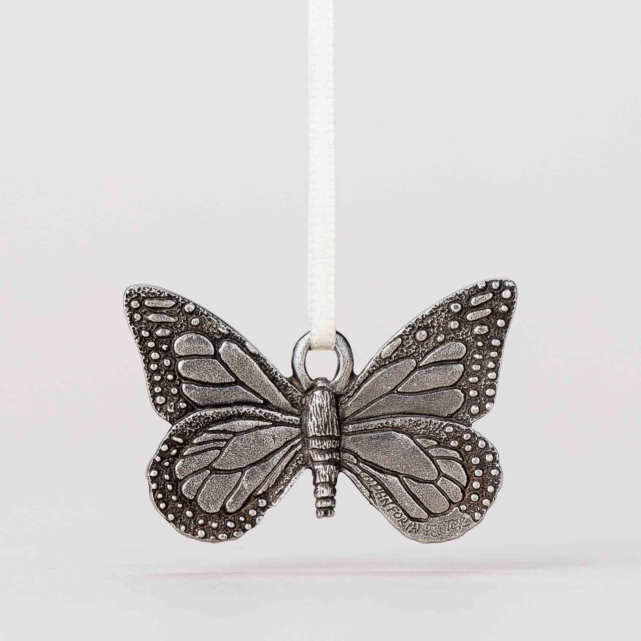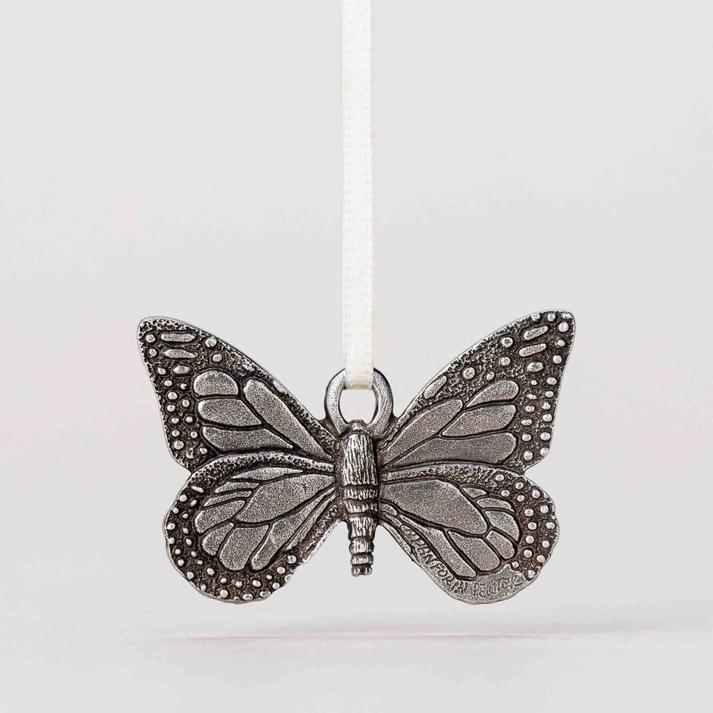 Around the world, the butterfly is held as a symbol of renewal, hope, and spiritual courage. The Danforth Butterfly Ornament was designed in homage to the beauty, mystery, and symbolism of butterflies. This ornament makes a perfect stocking stuffer, Secret Santa present, or for any other occasion. It's also a great way to send comfort and hope during stressful times. Look for our full line of Butterfly gifts, such as jewelry, magnet, ornament, charm, brooch, and barrettes. This pewter ornament is detailed on both sides. All our ornaments are crafted by hand in Middlebury, Vermont, by our talented pewter artisans.