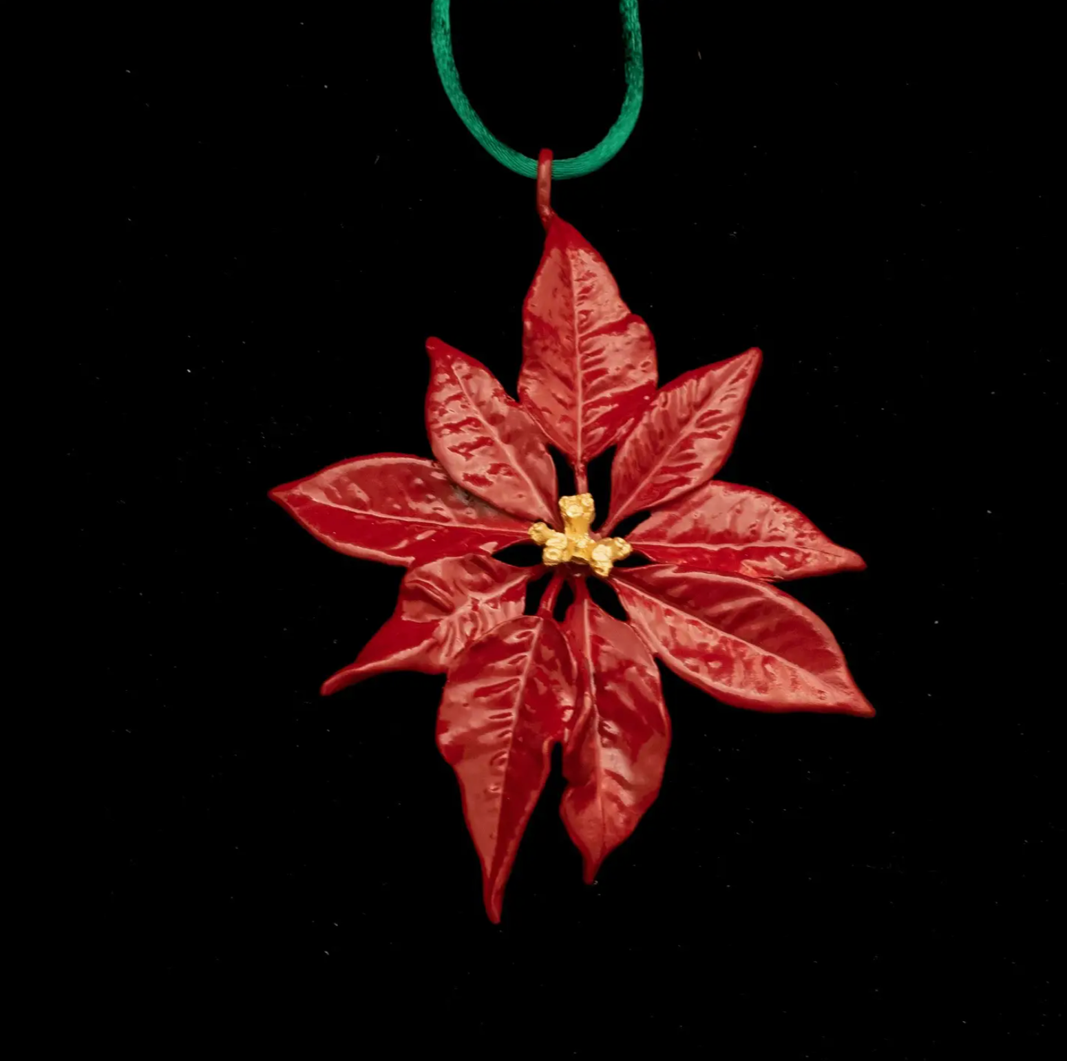 Measures: 2x2.75" Cast in pewter with a red poinsettia finish.
