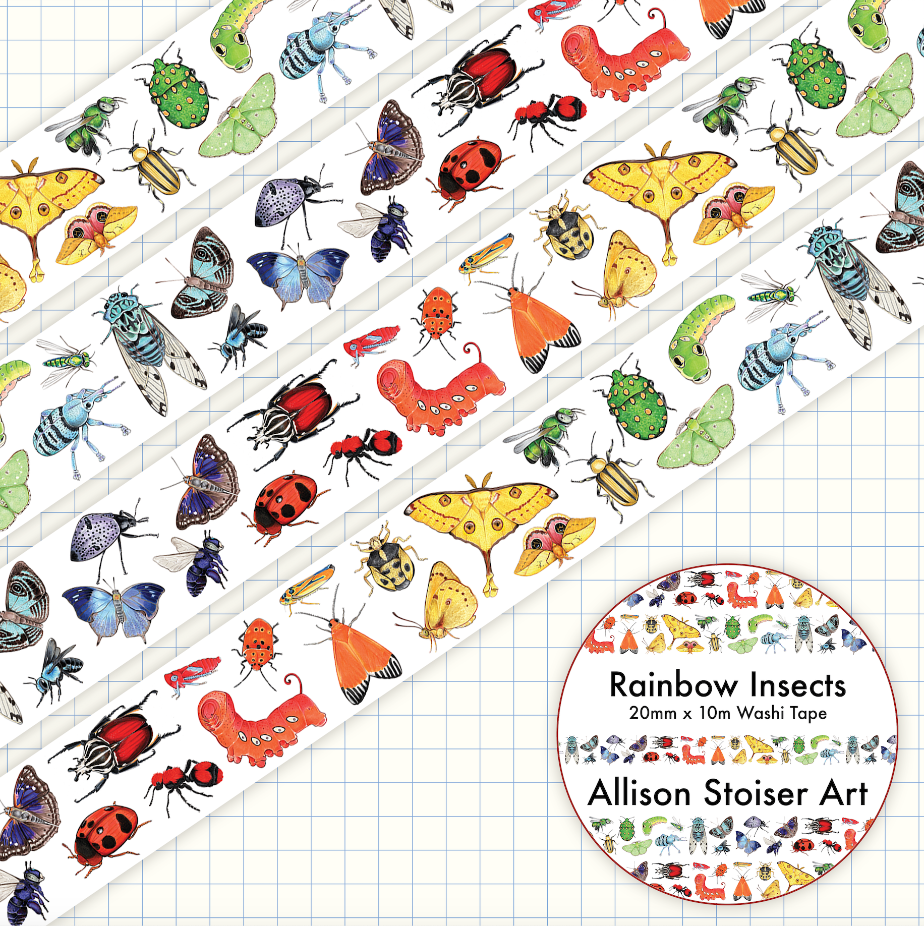 This washi tape, created in collaboration with The Washi Station, features a parade of colorful insects from around the world! This washi tape roll measures 20mm x 10m.