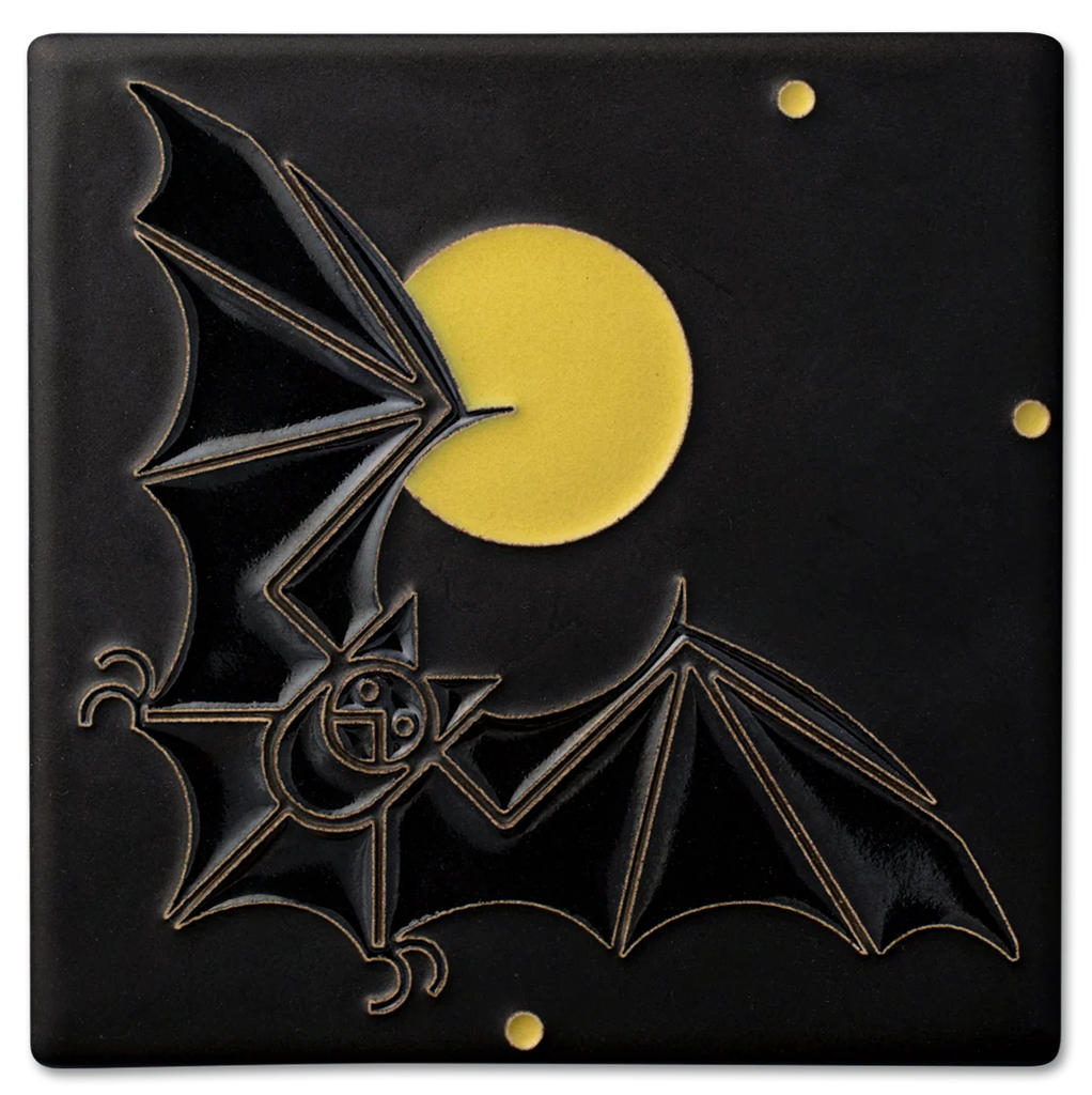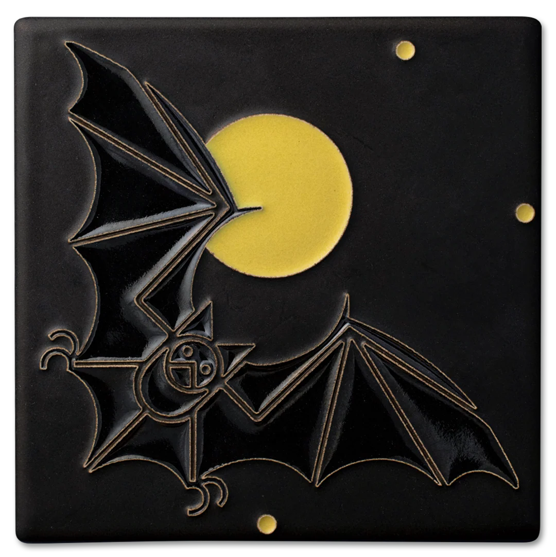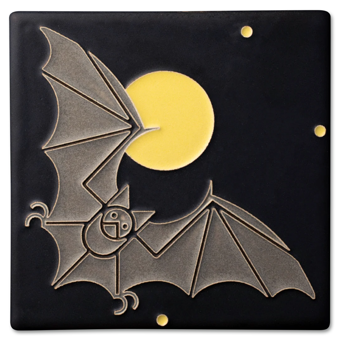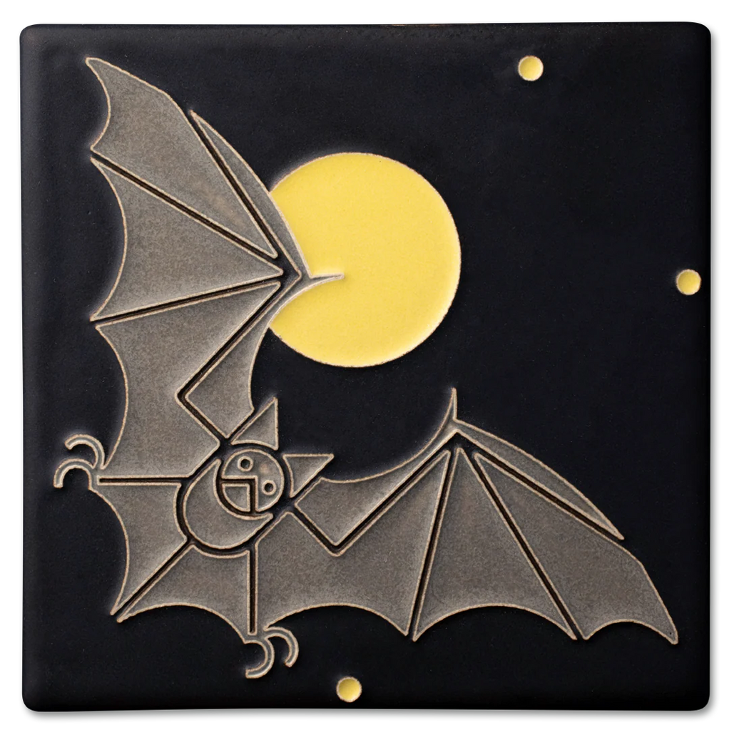 Charley Harper’s Bat, Bullfrog, and Bonfire first appeared in the Ford Times magazine (1968), capturing a lively night scene along Kentucky’s South Fork of the Cumberland River. For our 6x6 Motawi tile, we panned above the bonfire and bullfrog to focus on one serene moment: a bat gliding beneath a glowing moon. Harper’s original was painted in quiet grays, but we reimagined the sky in deep, vivid blues, adding a spark of color to the stillness. It’s a little square of midnight magic—nature’s hush, ready to hang on your wall.