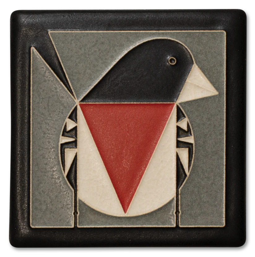 Originally part of the rare American Bird Architects series, Harper’s full artwork features this dashing dad hard at work: nest-building, chick-feeding, and hauling home the occasional potato bug. For our tile, we’ve taken a more minimalist approach. We've zoomed in on the essentials—putting the focus squarely on Mr. Grosbeak’s crisp lines and bold red chest badge.