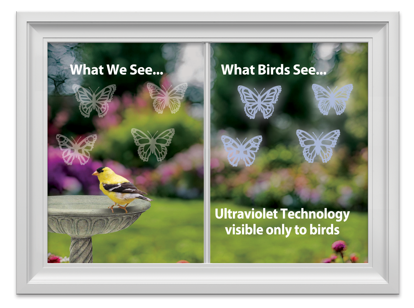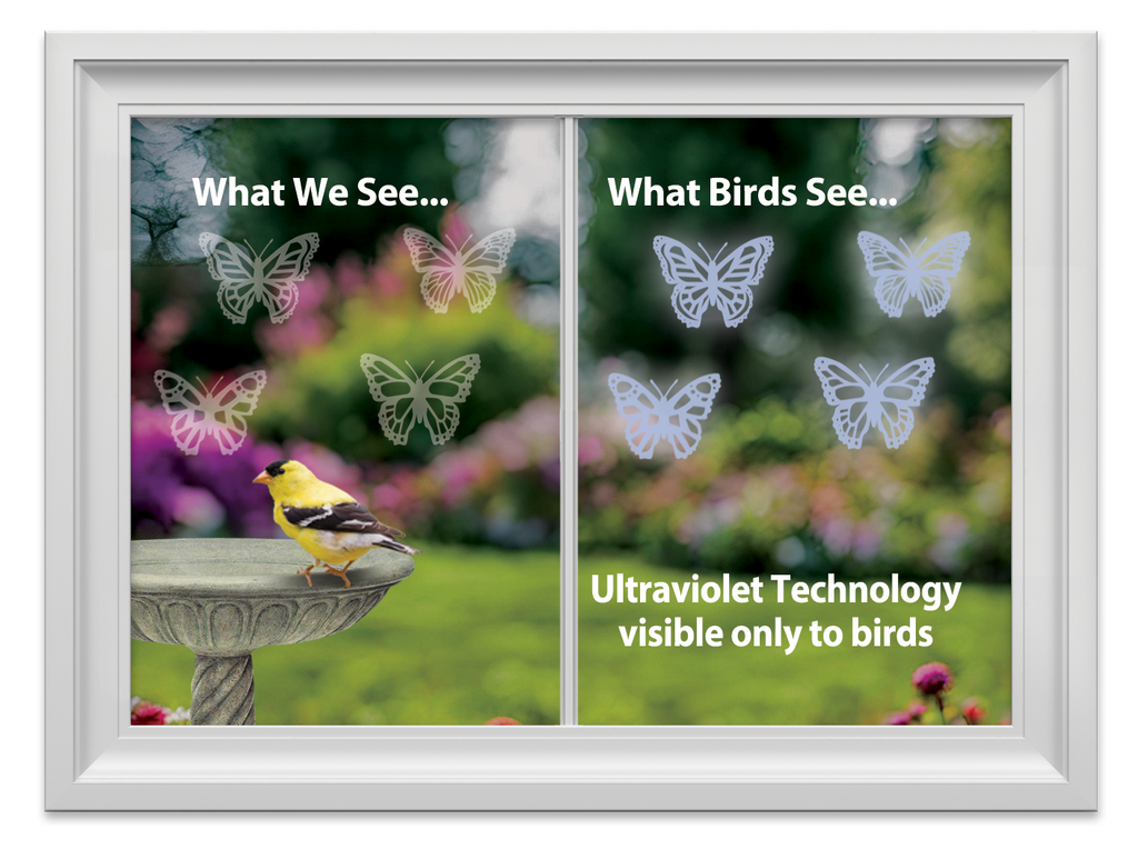 Help prevent wild birds from accidentally striking your windows with these butterfly shaped WindowAlert decals. Each decal has a special coating that reflects ultraviolet sunlight. This ultraviolet light is invisible to humans, but birds see it as a brilliant glow much like a stoplight.