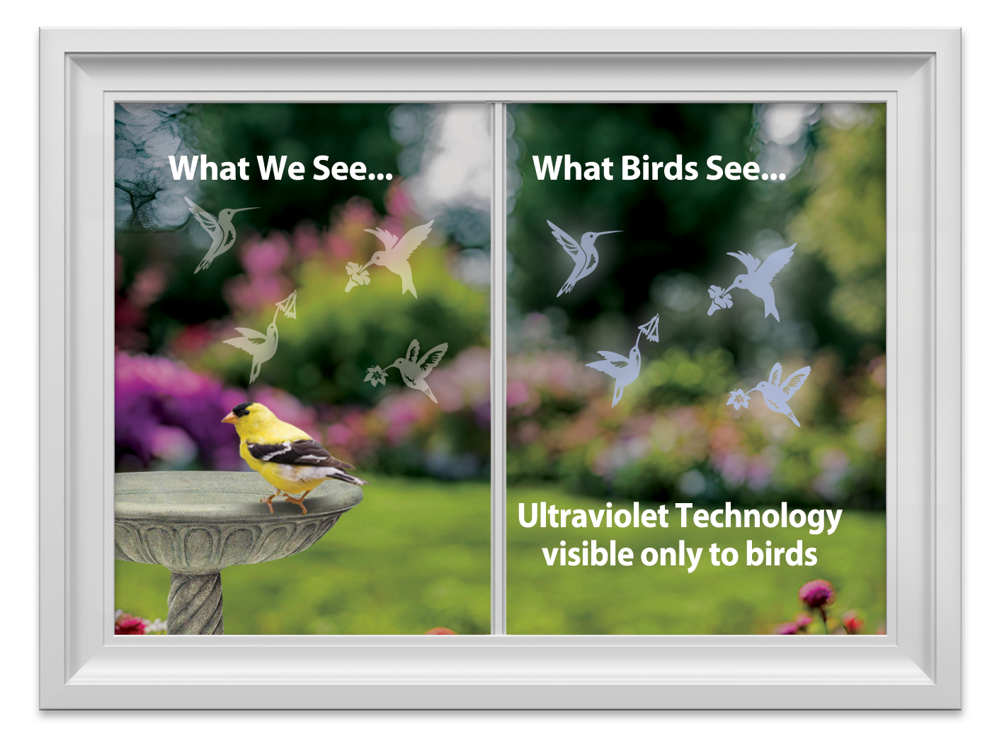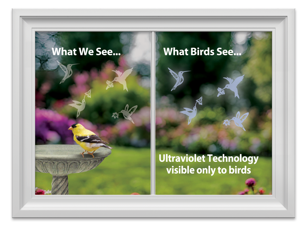 Help prevent wild birds from accidentally striking windows with these Hummingbird shaped WindowAlert decals. Each decal has a special coating that reflects ultraviolet sunlight. This ultraviolet light is invisible to humans, but birds see it as a brilliant glow much like a stoplight.