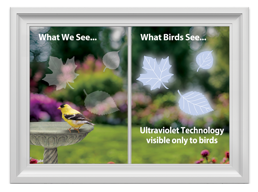 Help prevent wild birds from accidentally striking your windows with these leaf shaped WindowAlert decals. Each decal has a special coating that reflects ultraviolet sunlight. This ultraviolet light is invisible to humans, but birds see it as a brilliant glow much like a stoplight.